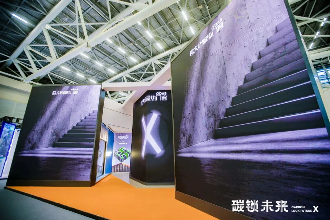2023年7月8日,欧大师隔热门窗「碳锁X未来」主题展在2023广州建博会如约而至!展会现场,“X”形LED屏幕矩阵和透光银色铝板外立面,以极具冲击力的视觉呈现方式,为参观者讲述“低碳艺术”与“人居空间”的故事。