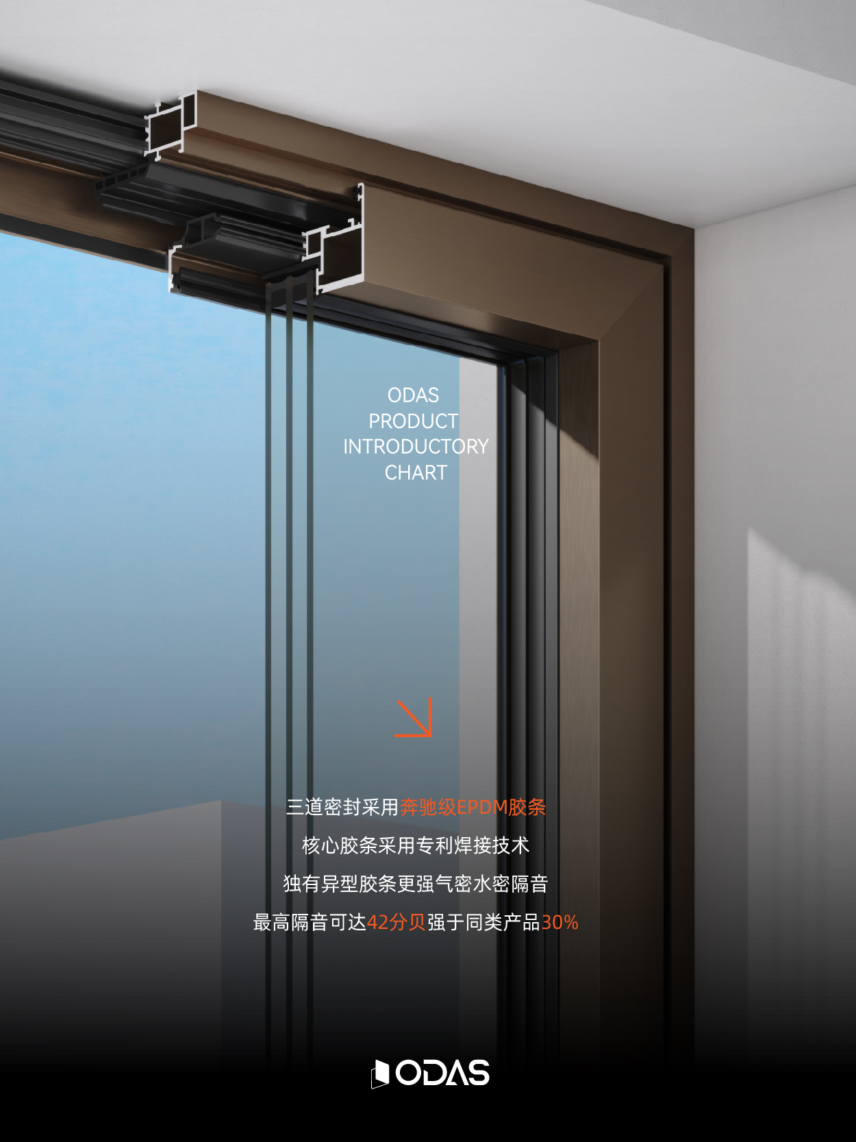 欧大师门窗标配进口三元乙丙EPDM密封胶条,不仅耐用、性能稳定,还能有效防止水汽、尘土等外界因素的侵入。同时,三道密封结构的设计,使门窗在关闭状态下胶条能够紧密搭接在窗框和窗扇的连接处,更是全面提升了门窗的防水防尘性能,让别墅内部始终保持干净整洁。