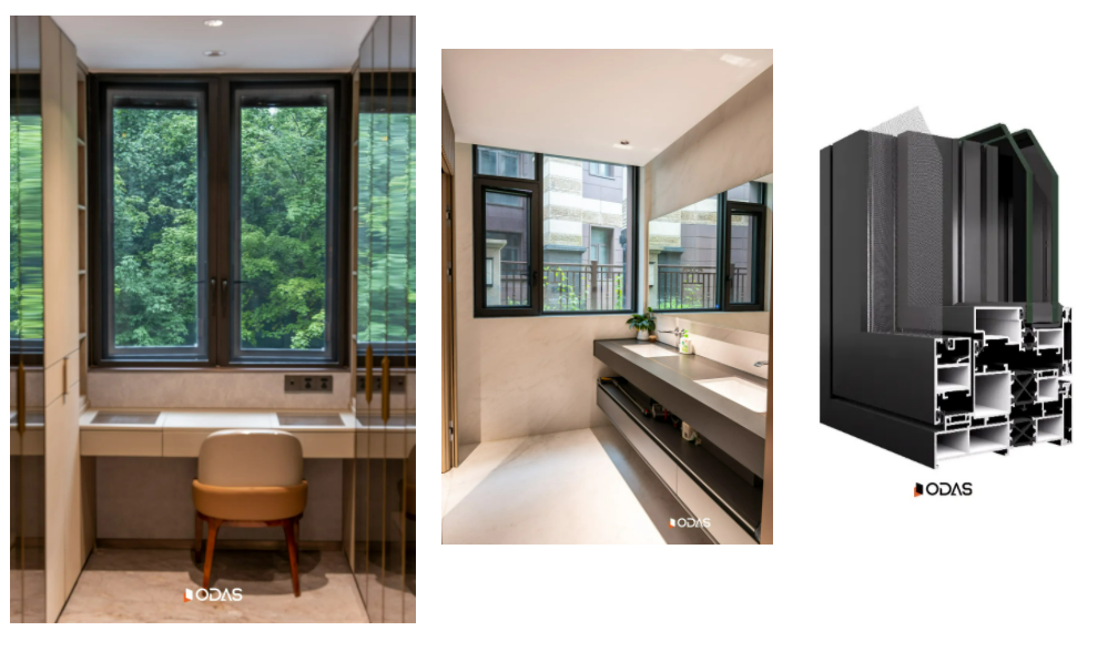 别墅四周视野开阔,清透玻璃窗既引光入室,又面临隔热挑战。WOY110外开窗纱一体作为欧大师门窗旗舰之作,以卓越的隔热保温降噪性能著称。其中隔热保温降噪系统——O5系统,是欧大师自主研发的独家专利。腔体中填充的高分子纳米隔热降噪凝胶,源自中国航天科工三院的环保航空技术,它不仅能承受从极寒-50℃至酷热500℃的极端温差考验,更以卓越的保温隔热、隔音防水性能,让家的温馨不受外界侵扰。独创五腔三角体封闭式设计隔热条,多腔体屏蔽热量,防止断桥连接处热对流传热。双银low-E玻璃巧妙构建起一道热辐射的屏障,真正做到有光感无热感,为别墅添雅致与舒适,同时空调少开,促进节能减排,引领低碳生活风尚。