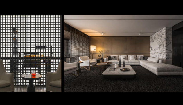 当然,空间设计完,不光得让人住着舒服,品质提升一大截,还得有点美学追求,让人赏心悦目。所以呢,我们融入了一种东方贵族的韵味,精心搭配特殊的材料,像手刷筒,还有木做的隔栅,把这些元素重新组合,营造出不同空间各自独特的情绪氛围。您瞧这画面,一打开门,映入眼帘的就是室内庭园,阳光、空气在里头欢快地交织,还有我们打造的多功能房,既能当作另一个起居室,闺蜜们凑一块儿喝下午茶也特别合适。