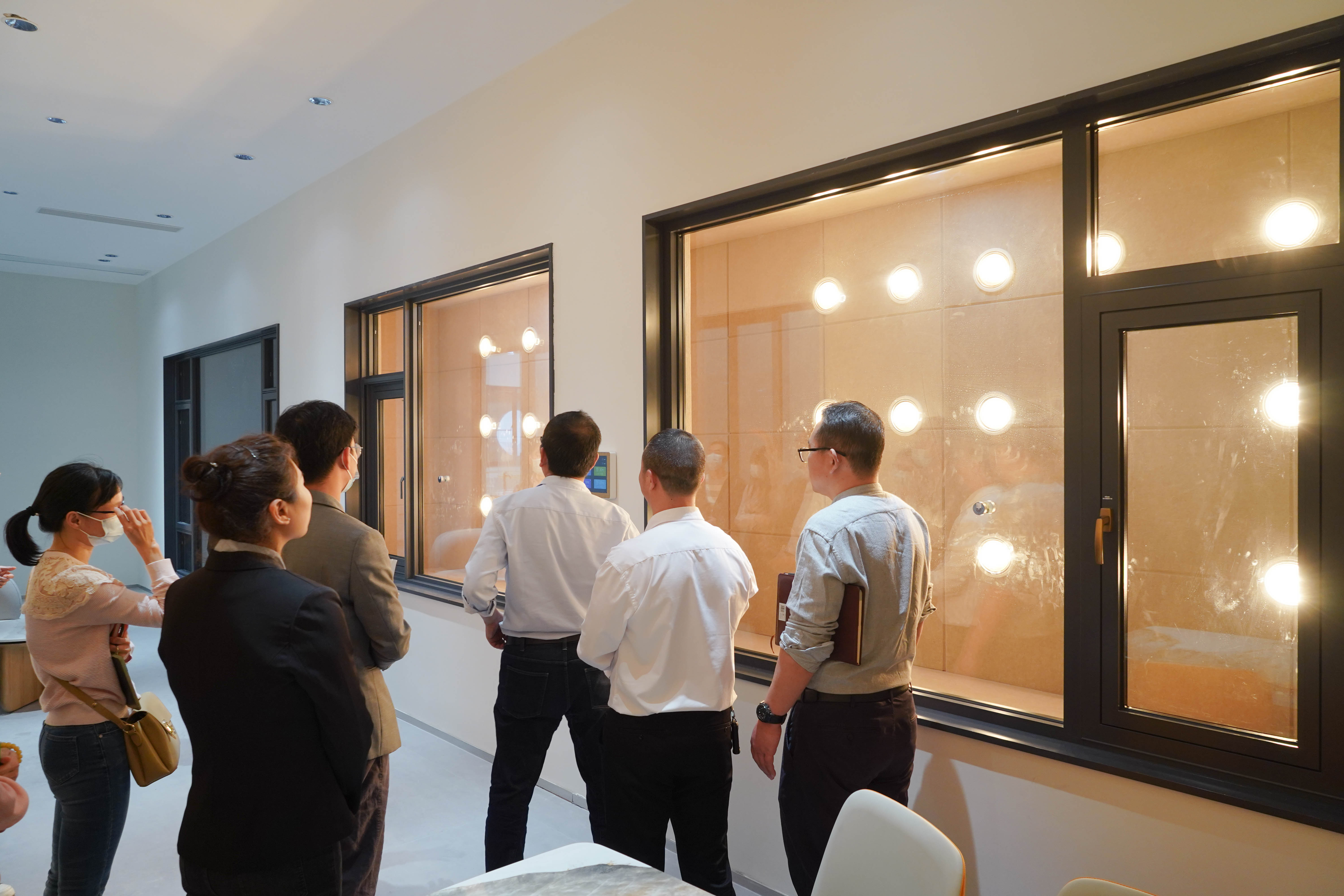 在张总的陪同下,专家组一行还参观了新落成的总部展厅,零距离感受隔热门窗的魅力。在展示厅内通过模拟场景对隔热门窗的产品性能进行现场演示体验,对欧大师门窗迎合响应国家双碳政策,在产品技术上的创新、工艺上的改革、产品性能功能的多元化连连点赞。