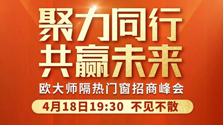 聚力同行,共赢未来,2022年欧大师隔热门窗招商峰会,4月18日19:30盛大直播