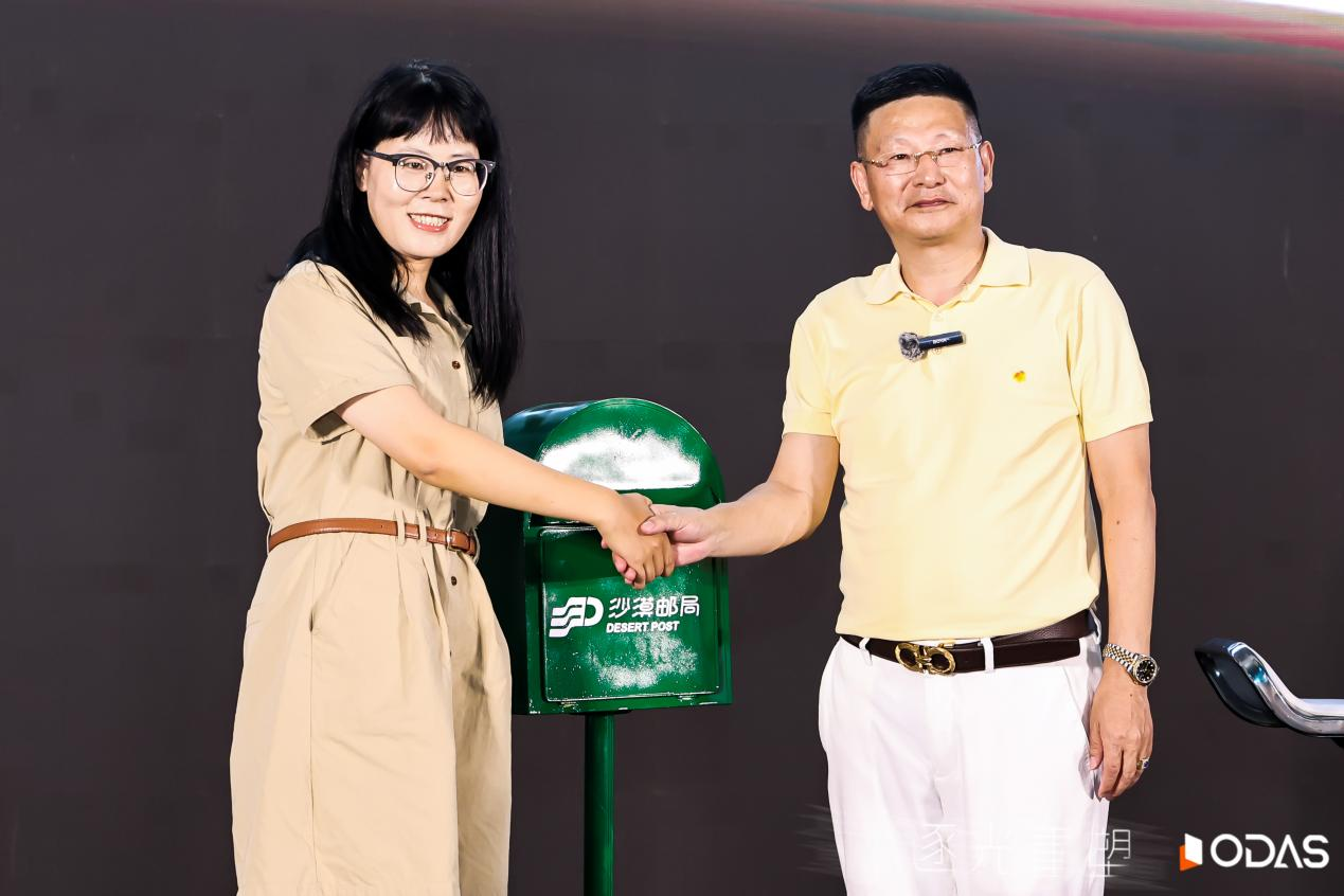 沙漠邮局的创始人高糖糖女士与欧大师门窗创始人欧阳天生先生共同登台,书写下对人与自然和谐共生的美好愿景。