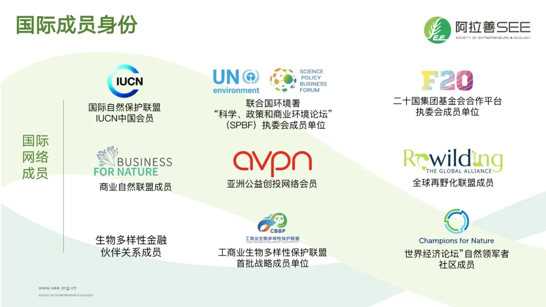 阿拉善SEE生态协会成立于2004年,由近百名企业家在内蒙古阿拉善腾格里沙漠发起。是中国首家以社会责任(Society)为己任,以企业家(Entrepreneur)为主体,以保护生态(Ecology)为目标的社会团体。