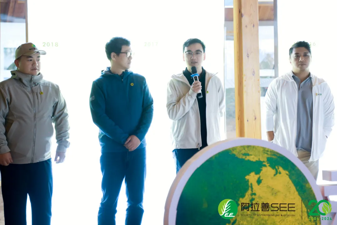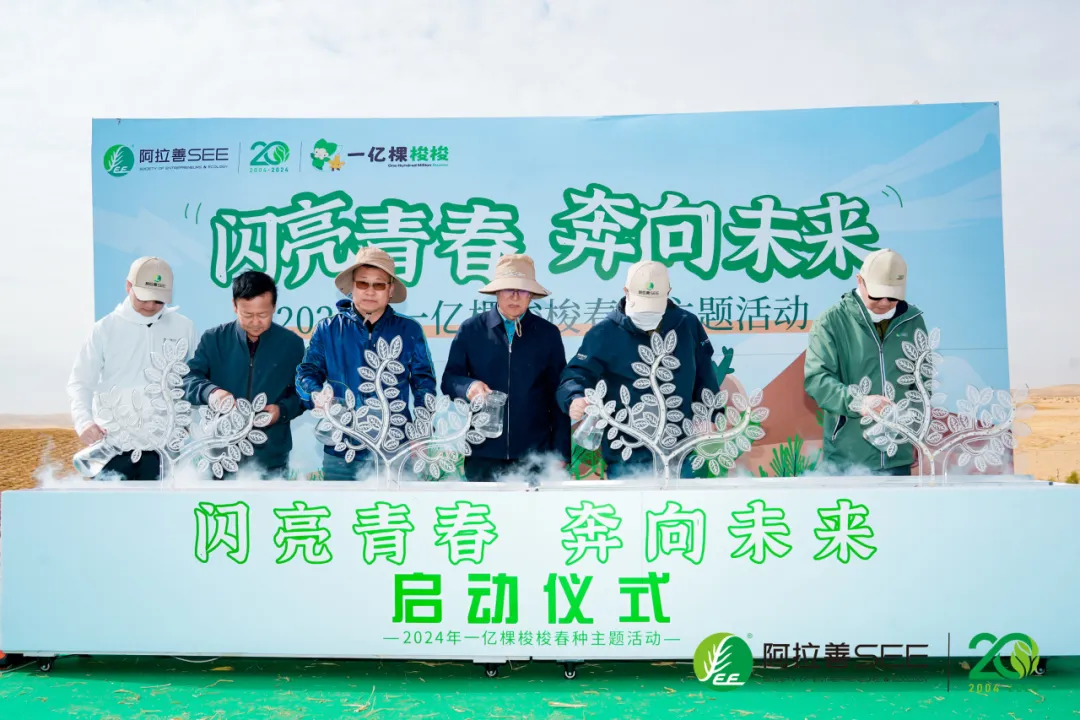 现场,阿拉善盟政协副主席陈君来,阿拉善SEE生态协会会长周洲、副会长肖南,内蒙古中心主席周玉斌、欧大师门窗副总经理张文斐,牧民代表、阿拉善盟左旗吉兰泰镇巴彦乌拉嘎查书记潘多云共同启动2024梭梭春种活动。