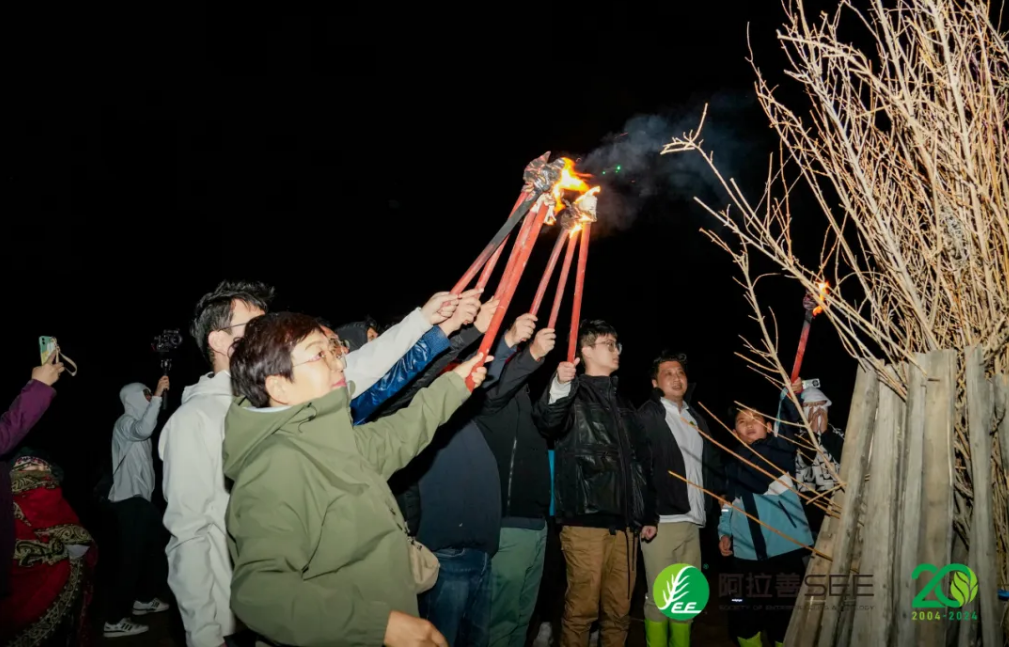 在庄重而神圣的仪式现场,企业家们见证了这一历史时刻。张文斐先生与新会员们接过牧民手中那簇象征着自然力量、生命延续与前人智慧的天火,这不仅是对新一代会员的厚望与信任,更是点燃了内心的希望之火,启迪着前行的方向。这一刻,他们不仅接收了前人的智慧与经验,更肩负起了推动环保发展、传承公益文化的重要使命。