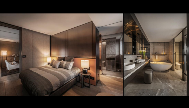 当然,空间设计完,不光得让人住着舒服,品质提升一大截,还得有点美学追求,让人赏心悦目。所以呢,我们融入了一种东方贵族的韵味,精心搭配特殊的材料,像手刷筒,还有木做的隔栅,把这些元素重新组合,营造出不同空间各自独特的情绪氛围。您瞧这画面,一打开门,映入眼帘的就是室内庭园,阳光、空气在里头欢快地交织,还有我们打造的多功能房,既能当作另一个起居室,闺蜜们凑一块儿喝下午茶也特别合适。