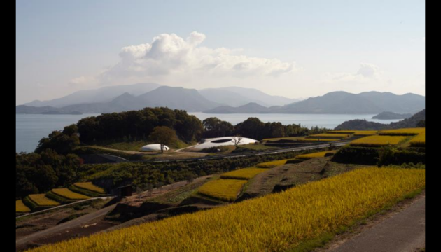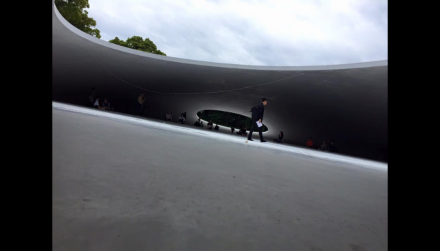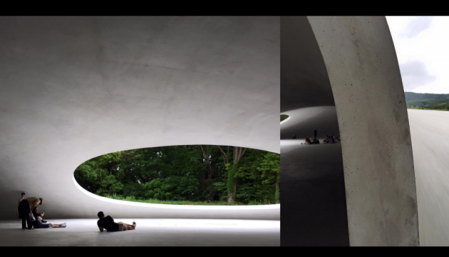 我给大家介绍个日本奈户内海的峰岛美术馆,这是西泽立卫跟内藤里共同创作的。没去之前,光看图片,觉得这建筑没啥特别的,就像个弹壳挖了个洞。