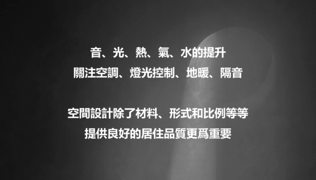 在做设计的时候,我们常常会碰到这样的问题,要是客户要求咱别搞那些风格化的符号,别整那些花里胡哨的造型,那设计师还能干点啥呢?这可是个特别关键、需要落地执行的过程。毕竟,做设计可绝不是搞美工,不是简单地摆弄摆弄符号就完事了。所以啊,我就盼着在咱们打造的空间里,摒弃那些表面的符号、切割,还有造型元素,把精力更多地聚焦在怎么让时间仿佛停驻在这空间里,怎么通过光跟材料,把那种能传递情绪的劲儿给使出来。当然,还有刚刚反复提及的,对居住环境里音、光、热、气、水的把控。
