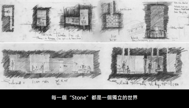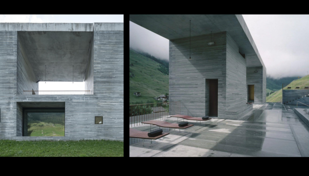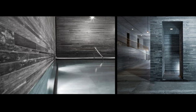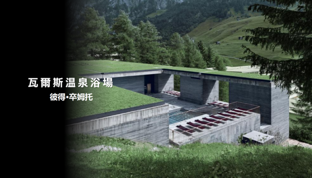 那在卒姆托的眼里呢,他觉得石头跟水本来就应该在一起啊。所以他在选择设计的时候,他会先从材料本身开始。