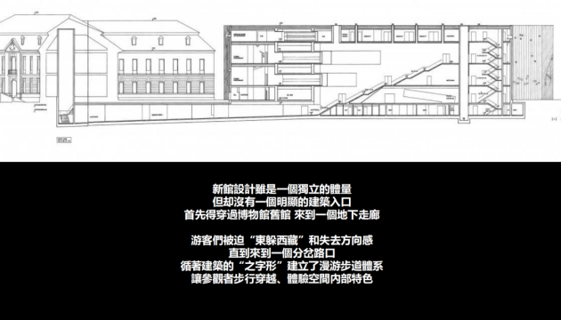 还有柏林的犹太博物馆,是建筑师丹尼而・裹伯斯金设计的。这博物馆新馆的设计理念相当独特,以扭曲麒麟的概念,重现犹太民族曾经被迫害的那段惨痛历史。您看墙壁上的分割线,那是用犹太特别的五芒星做的分割,在建筑立面上传递着历史的厚重。新馆虽是独立量体,但入口得从旧馆进,得走过一条长长的地下长廊,在这过程中,就好像让人体验到当年犹太民族被迫东躲西藏的感觉,时不时走到死胡同,又得往回走,在这曲折的参观动线里,一步步把您引到最后一个像峡谷一样幽深的廊道。在这峡谷里头,放了好多铁片,铁片做成人脸的模样,您走过去,一脚踩上去,铁片碰撞发出特别尖锐、刺耳的声音,在这空间里回荡,建筑师就是想用声音,让咱们切身体会到当年那些人的无奈,还有被压迫的窒息空间感。