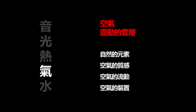 再来说说空气,震动的云层、自然的元素、空气的质量,还有流动的装置,这些都和空气息息相关。现在啊,咱们希望利用空气流动来营造氛围,就像刚才讲光线的时候,把光线和空气流动结合起来作为设计元素。