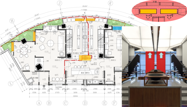 下面是我们做过的一个展厅项目,在这个项目中,面对扇形柱子与弧形玻璃幕墙构成的复杂空间,且梁底仅一米八十几,我们需巧妙规划。一方面,从中国建筑文化中汲取灵感,每一条线皆与材料规格、吊顶、灯光相关联,让不规则空间趋于方正。另一方面,在玻璃幕墙设计上,若早与欧大师门窗合作,便无需浪费异形空间。普通玻璃的热辐射致使人体需与玻璃保持一米五以上距离,我们通过模拟生活场景,将空间规划为方正区域与花园边角,以“别墅置于花园中”为理念,利用水分降温,实现功能与美学的融合。