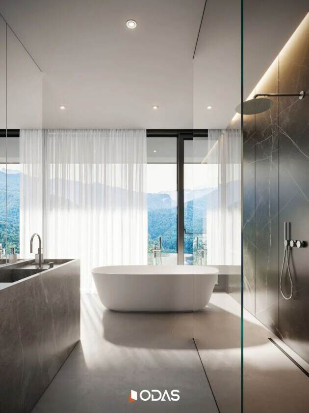 270°环幕山海视野,是建筑本体的有机延伸。设计师以“减法的艺术”重构空间边界,让马峦山的晨雾与南海的晚霞成为室内最生动的艺术写照。在这里,每扇窗户都是精心计算的取景框,让山色海韵毫无保留地倾泻而入。