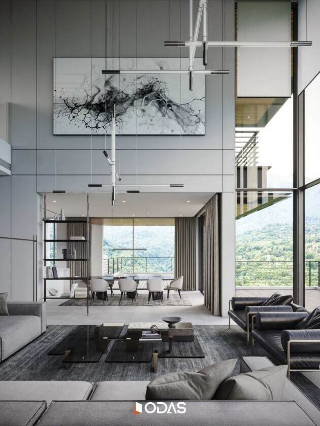 别墅大宅以大空间为特色,在设计时尤为强调整体空间的开放与流畅性。通过巧妙地运用门窗作为功能区之间的桥梁与分隔,利用其灵活开合特性打破传统空间限制,极大地延伸视觉边界,营造宽广、通透且舒适的居家氛围。