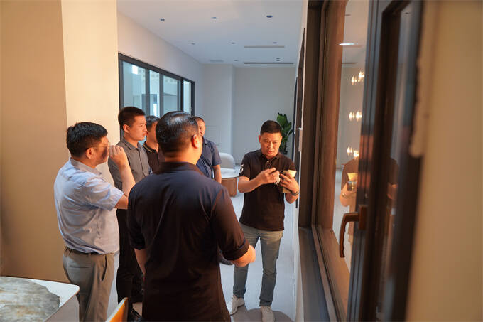 3月14日,南国鼎峰装饰的研发团队在董事长刘金霖的带领下,来到欧大师隔热门窗总部进行参观交流。欧大师隔热门窗董事长欧阳天生陪同,并讲解了欧大师隔热门窗的品牌理念、产品研发、智能制造等方面内容。