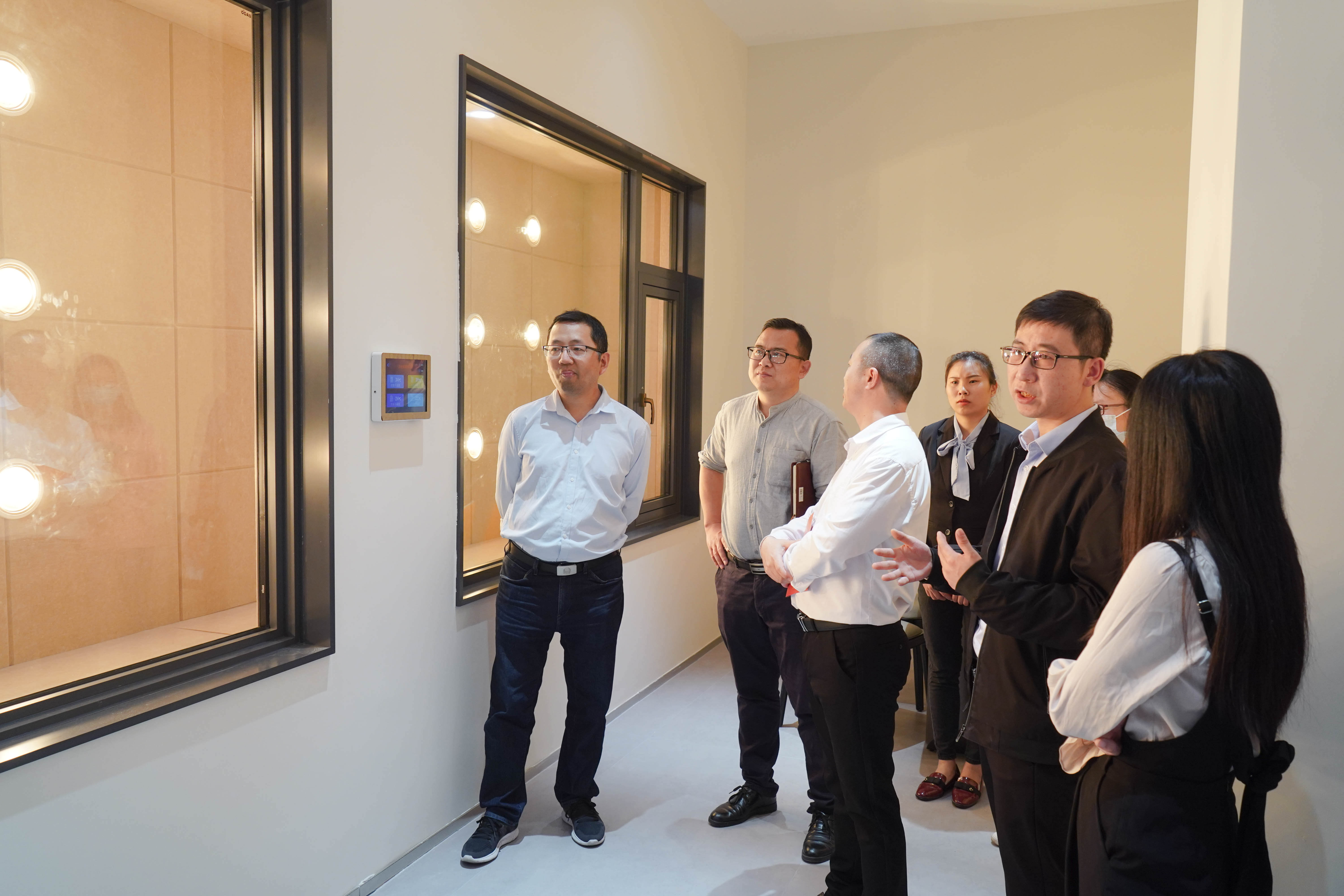 在张总的陪同下,专家组一行还参观了新落成的总部展厅,零距离感受隔热门窗的魅力。在展示厅内通过模拟场景对隔热门窗的产品性能进行现场演示体验,对欧大师门窗迎合响应国家双碳政策,在产品技术上的创新、工艺上的改革、产品性能功能的多元化连连点赞。