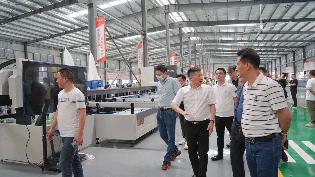 在会议前夕,到场会员先在佛山市鄱阳商会创会会长、欧大师董事长欧阳天生及工作人员的带领下参观了总部展厅和生产线,深入了解欧大师隔热门窗产品及4.0智造生产线的情况。