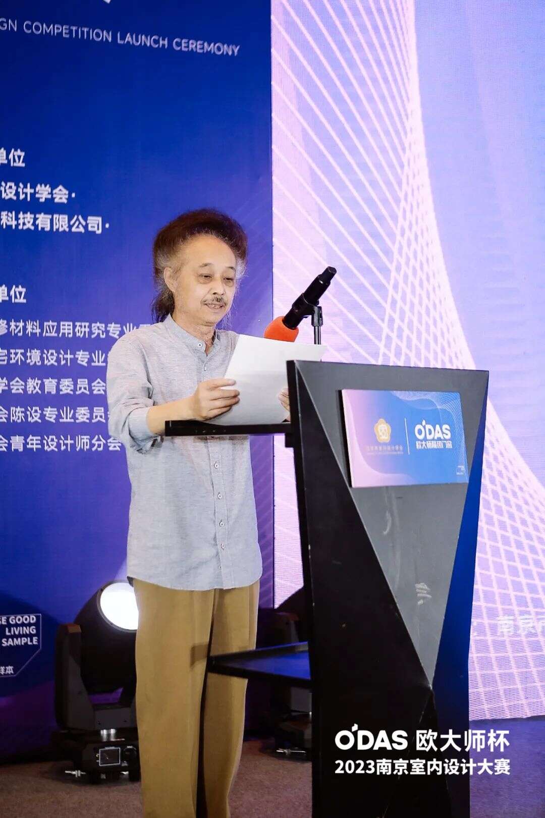 活动伊始,受高祥生理事长委托,南京市室内设计学会执行会长陈国欢对现场所有人的到来表示诚挚的欢迎和感谢。赛事已历经十多年的更迭与演变,诸多优秀设计案例涌现,与城市气韵特质的融合,展现了独特的设计力和设计精神,锋芒尽显,成为设计南京的重要范式。非常荣幸本届赛事能够与欧大师达成紧密合作,势必能够铺展开南京设计更加精彩的篇章。